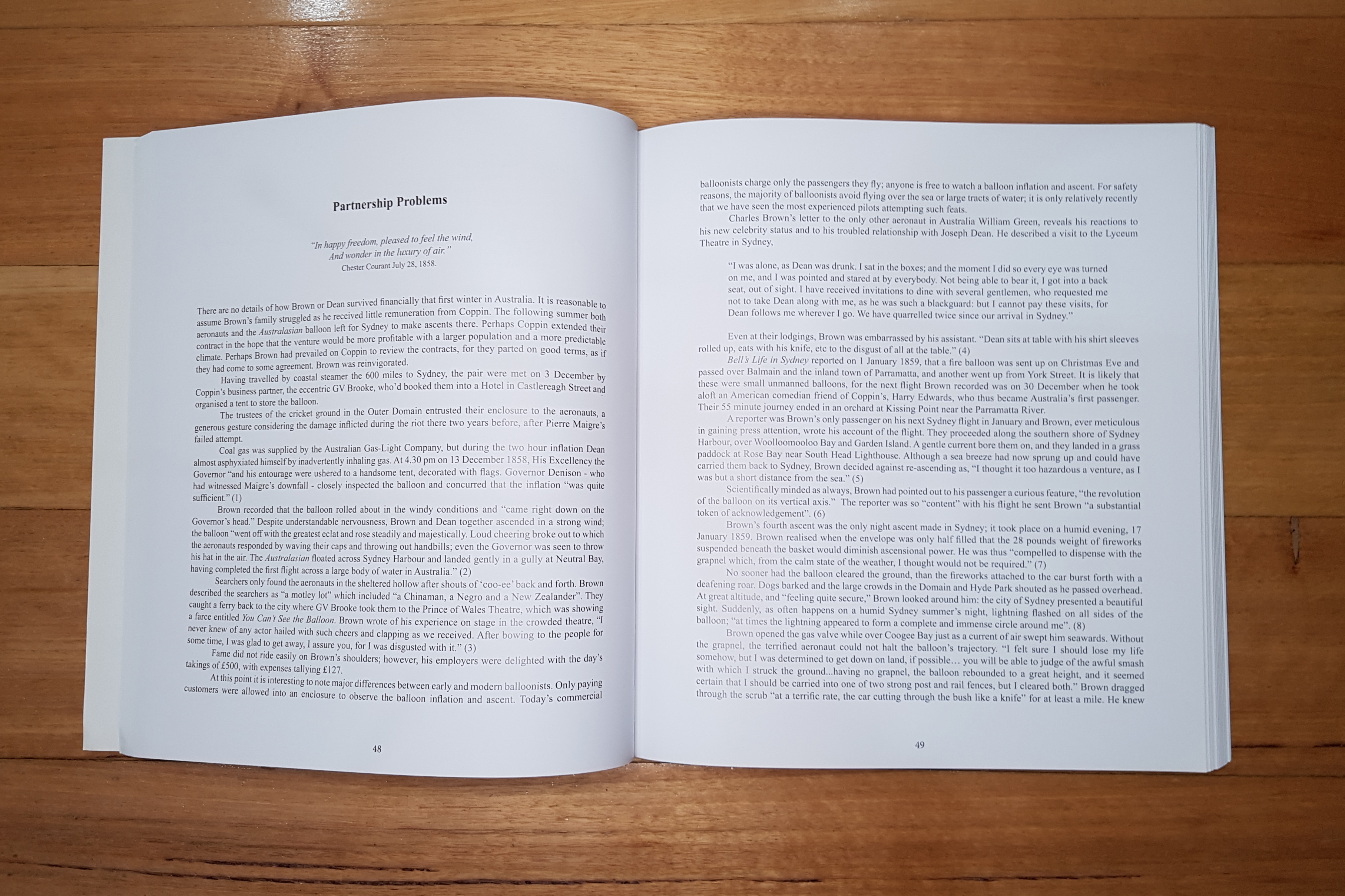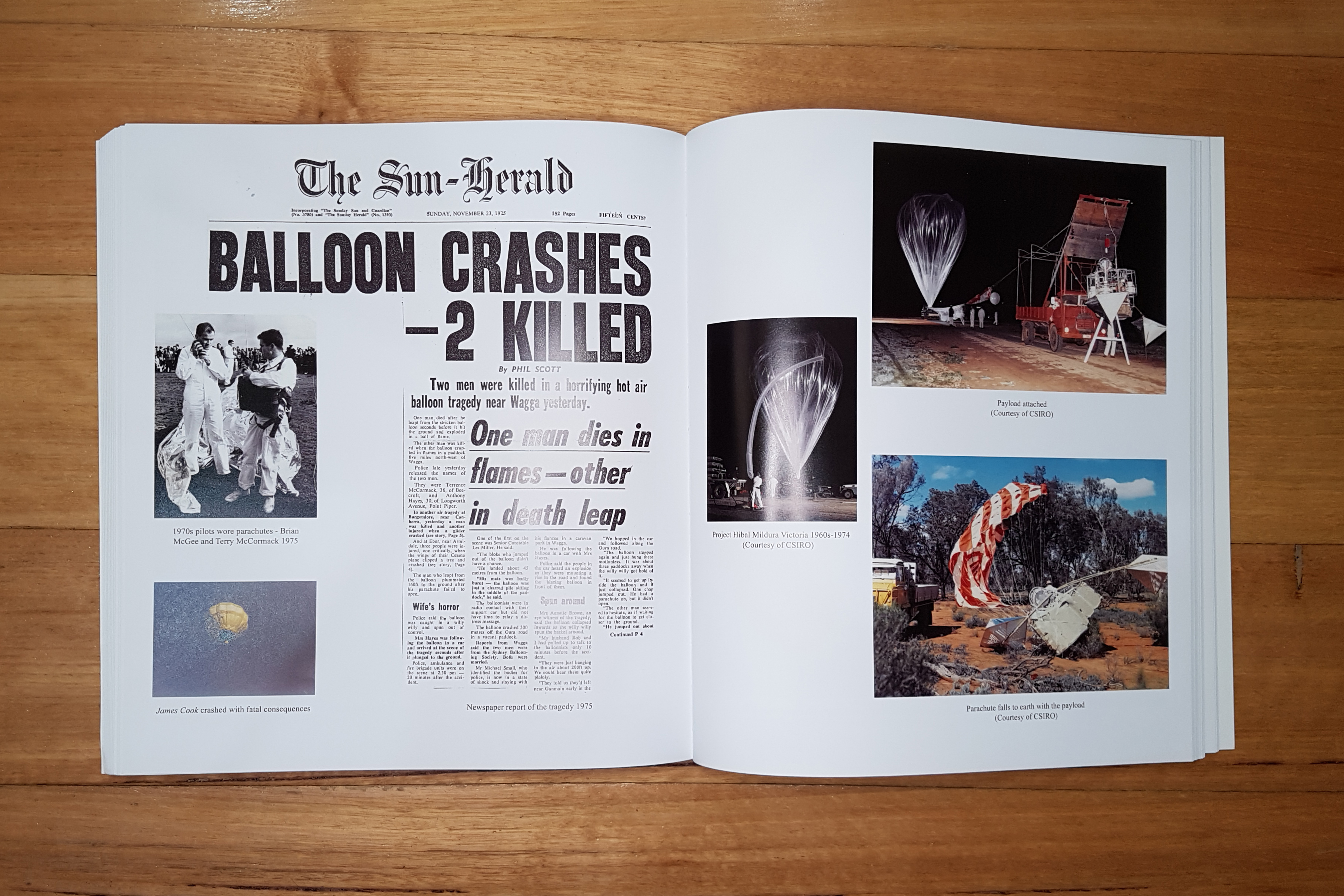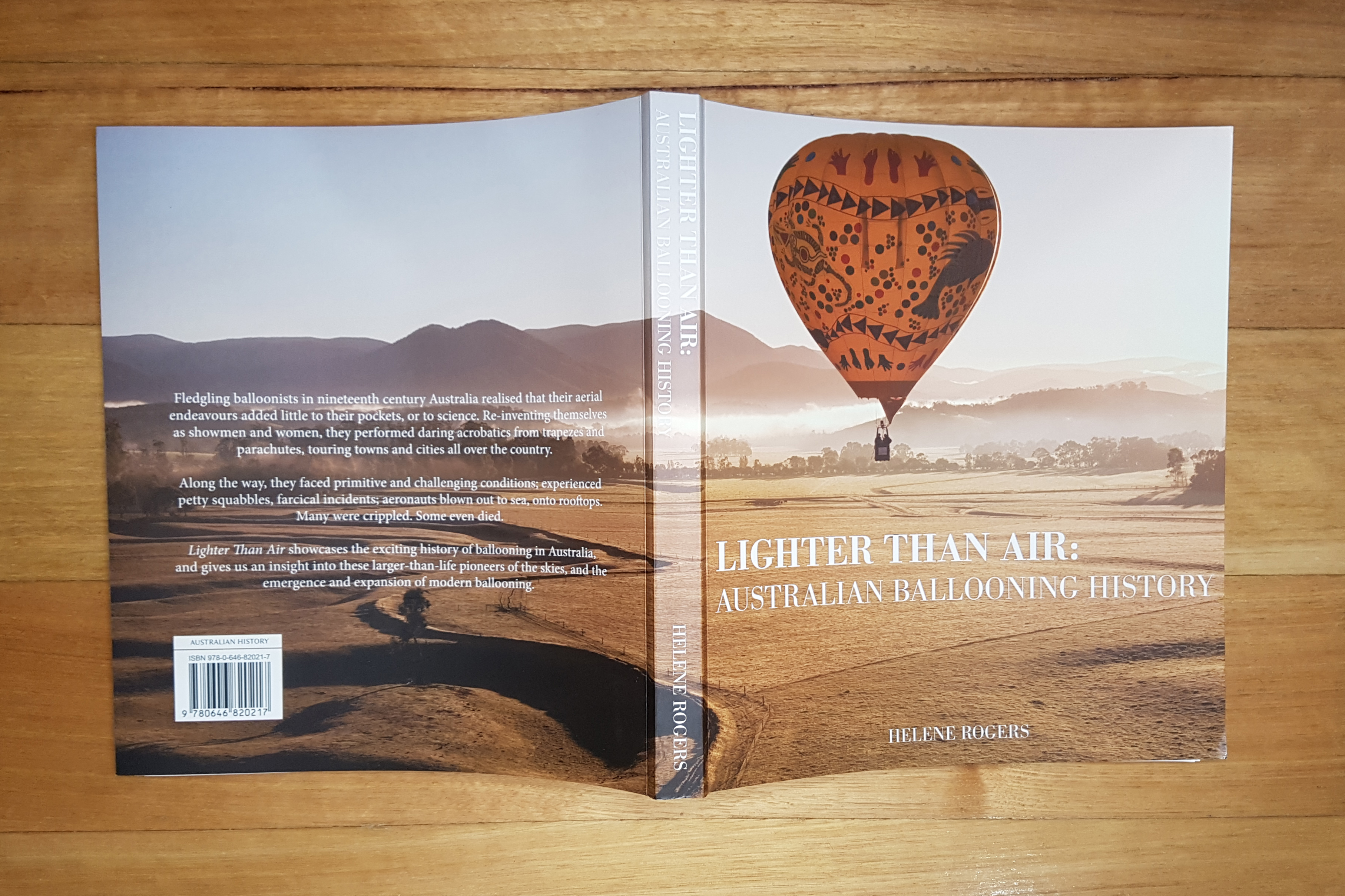 I collaborated closely on the book with Helene, and her proof-reader Norma, to create a simple layout with space available to let key quotes and excerpts breathe. Helene agreed we should diverge from her initial draft for the book’s cover and took my offer of an alternative in the form of the wraparound image that eventually went to print. Although her vision was representative of Australian ballooning history, I felt a uniquely Australian photograph would make a strong statement.